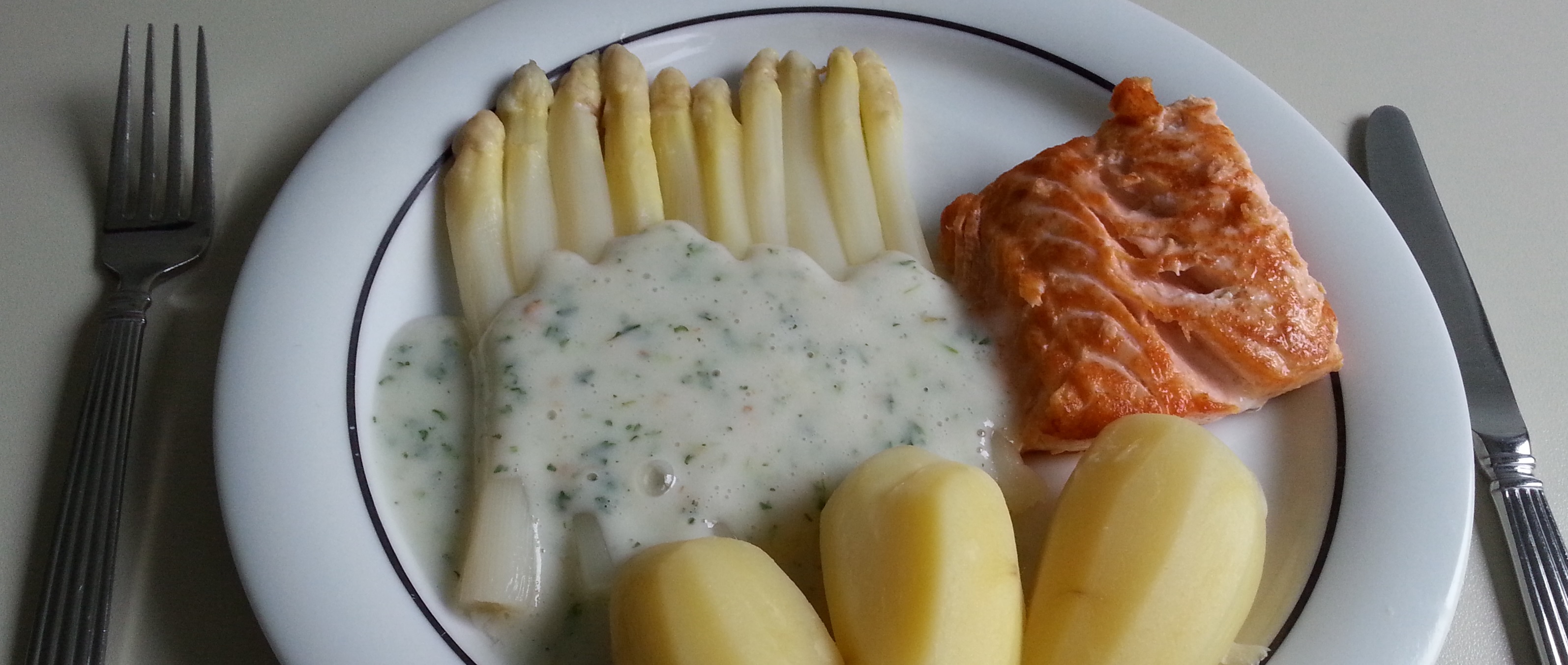 Asperges met kruidensaus en zalm
